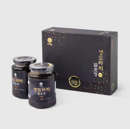 명절 선물을 고를 때 포장도 굉장히 중요한데요. 사진을 보다시피 도라지청 선물세트 박스는 금박글씨와 함께 고급스럽게 포장되어 선물의 가치를 높여주고 있어요.