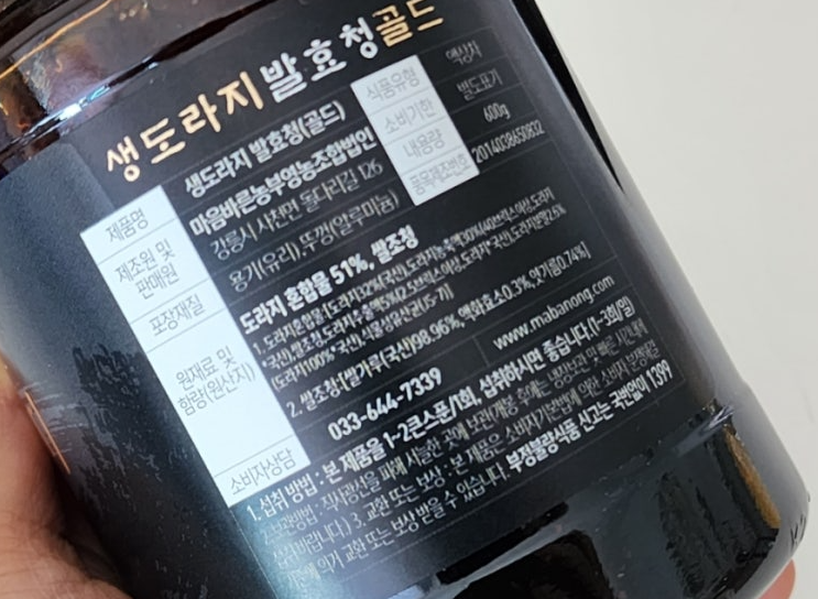 - 방법: 컵에 생도라지 발효청을 넣고 따뜻한 물을 부어 잘 섞어줍니다.