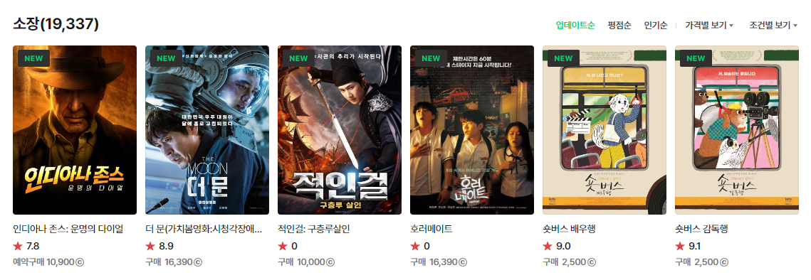 소장하고 싶은 영화를 선택하여 결제하면 다운로드가 가능합니다.