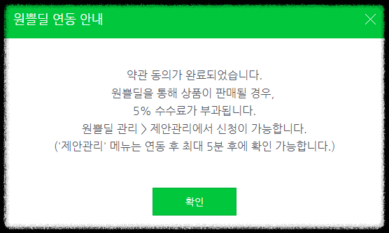 원쁠딜 매출 연동수수료는 5% (주문관리 수수료(결제수수료) 별도)