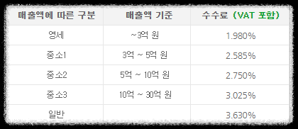 여기서 주문관리 수수료는 국세청 기준 매출규모에 따라 차등 적용