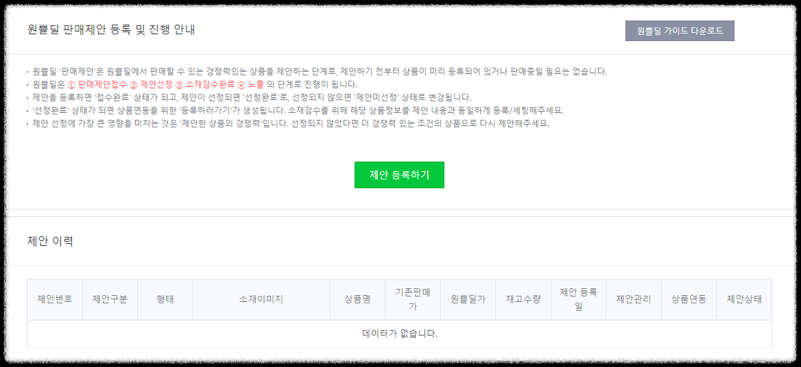 원쁠딜 제안관리 > 제안등록하기