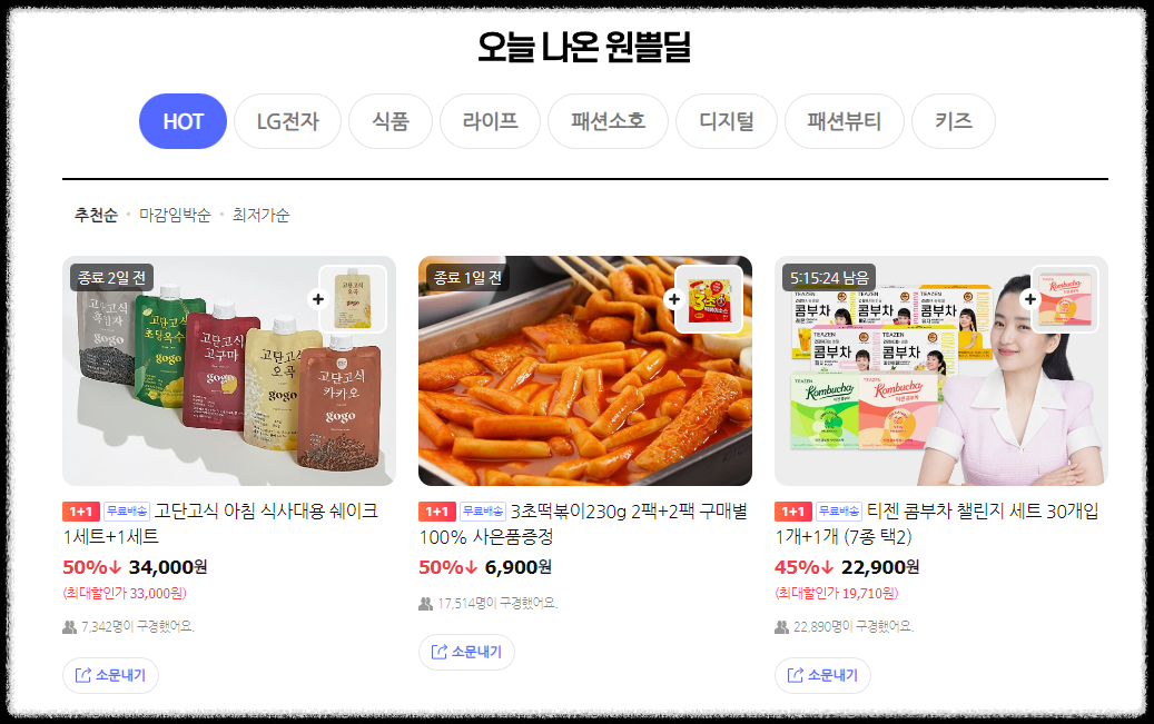 원쁠딜 상품을 살펴보면