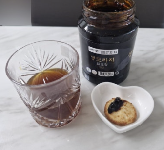 - 생도라지 발효청 1~2스푼을 컵에 넣고, 따뜻한 물 200ml를 부어 섞어줍니다.