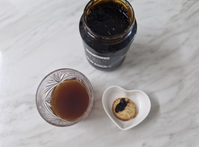 목 통증이 심하거나 외출 중에는 발효청을 스푼으로 바로 떠서 섭취하세요.