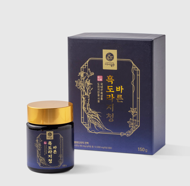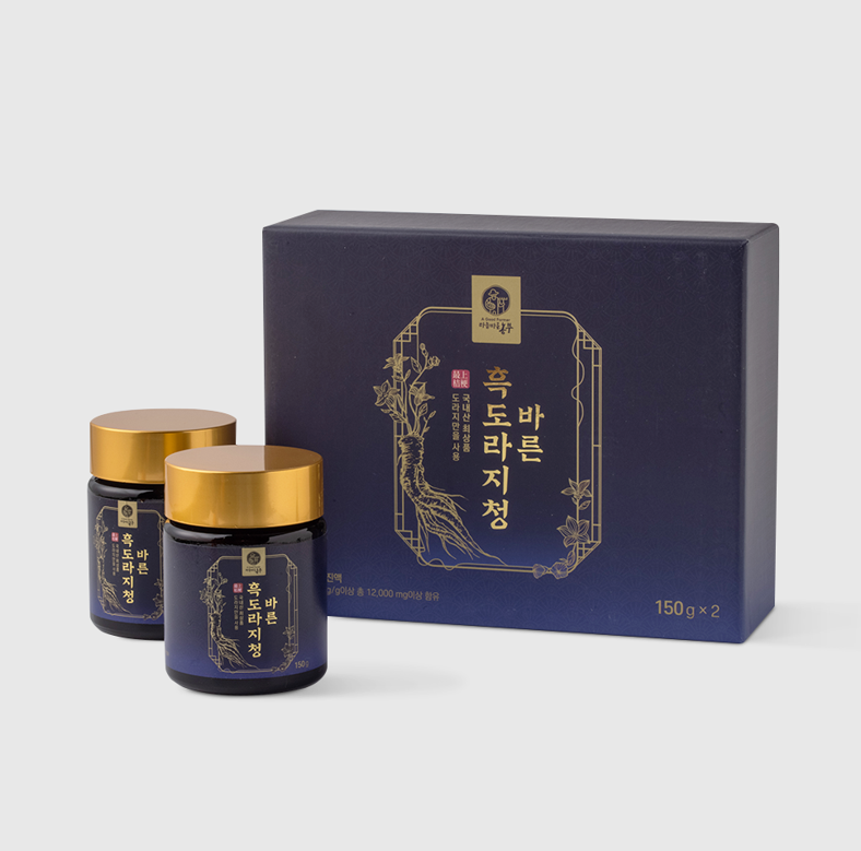 그래서 찐한 도라지청을 원하시거나 맛보다 건강이 우선이신 분들께 추천드려요. 게다가 바른 흑도라지청은 포장 자체가 선물하기 좋은 박스로 포장되어 있어서 주변에 선물하기도 좋고요.