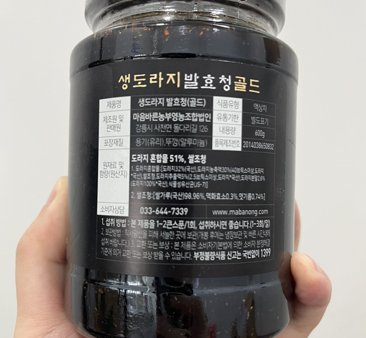 제가 추천하는 도라지 함량 높은 약도라지청은 생도라지 발효청인데요.