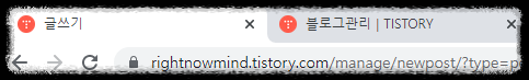 티스토리 파비콘에서 방금 업로드한 파비콘으로 변경된 것을 볼 수 있습니다. 매우 간단하죠? 오늘은 티스토리에서 아이콘과 파비콘을 설정하는 방법에 대해서 알아봤습니다.