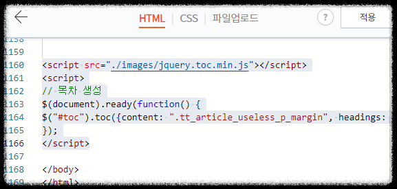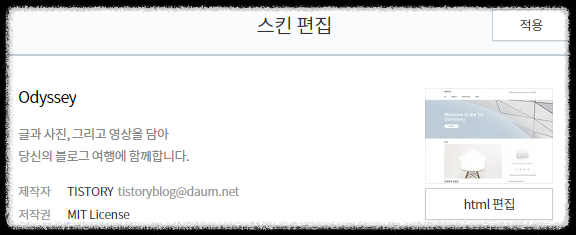 티스토리 관리 > 꾸미기 > 스킨편집 > HTML편집
