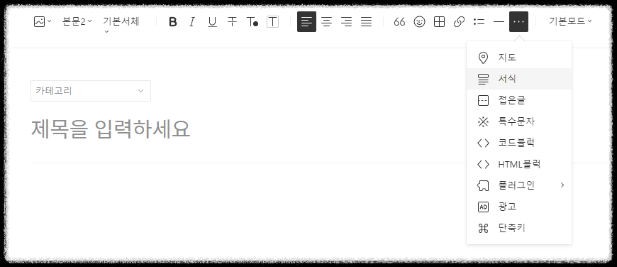글쓰기 > 점 3개 > 서식
