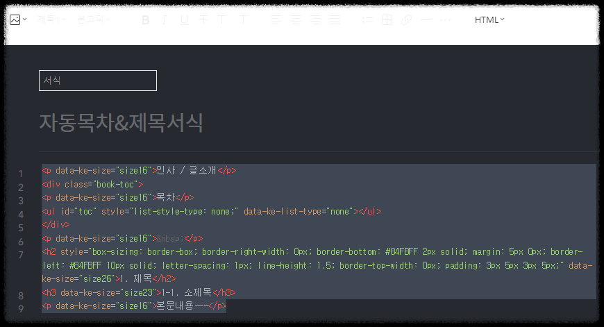 1. 자동목차 코드 적용하기