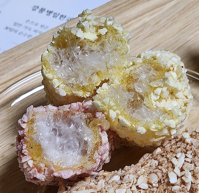 강릉명일한과는 좋은 재료만을 엄선해서 사용해요. 첨가물을 최소화하고 자연 그대로의 맛을 살렸습니다. - 바삭하고 달콤한 식감