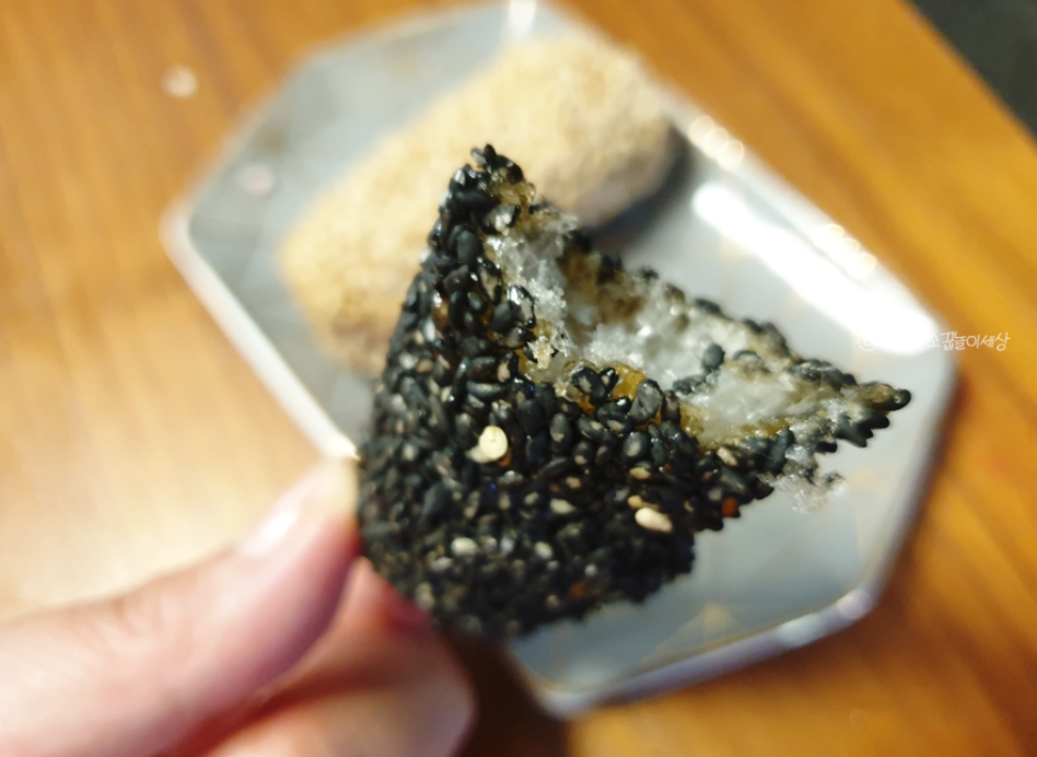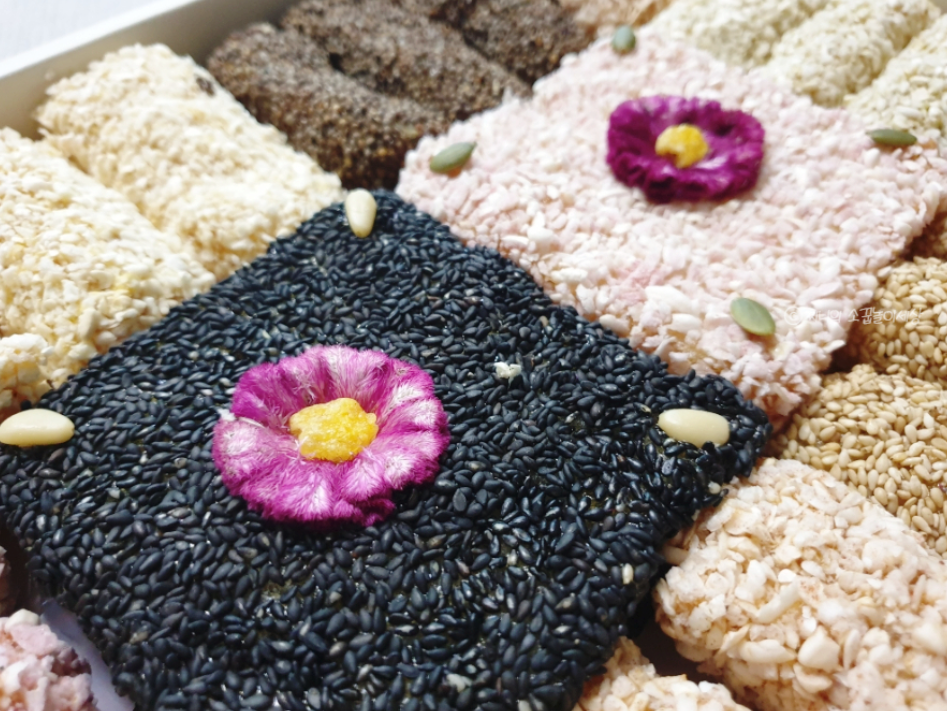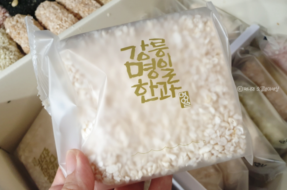 수제 한과의 쫀득하면서도 바삭한 모습이 보이시나요? 한과를 잘못 만들면 먹었을 때 치아에 달라붙는다고 하는데, 강릉 명일한과는 그런거 없이 깔끔하게 먹을 수 있습니다. 맛도 좋고 깔끔해서 어른들이 정말 좋아하십니다.